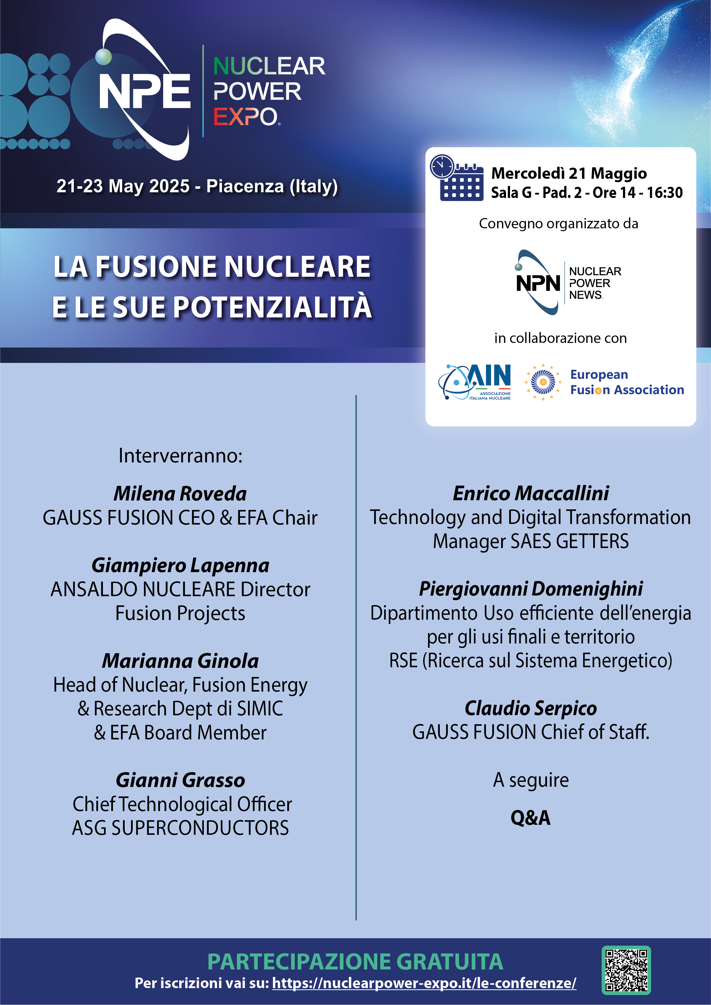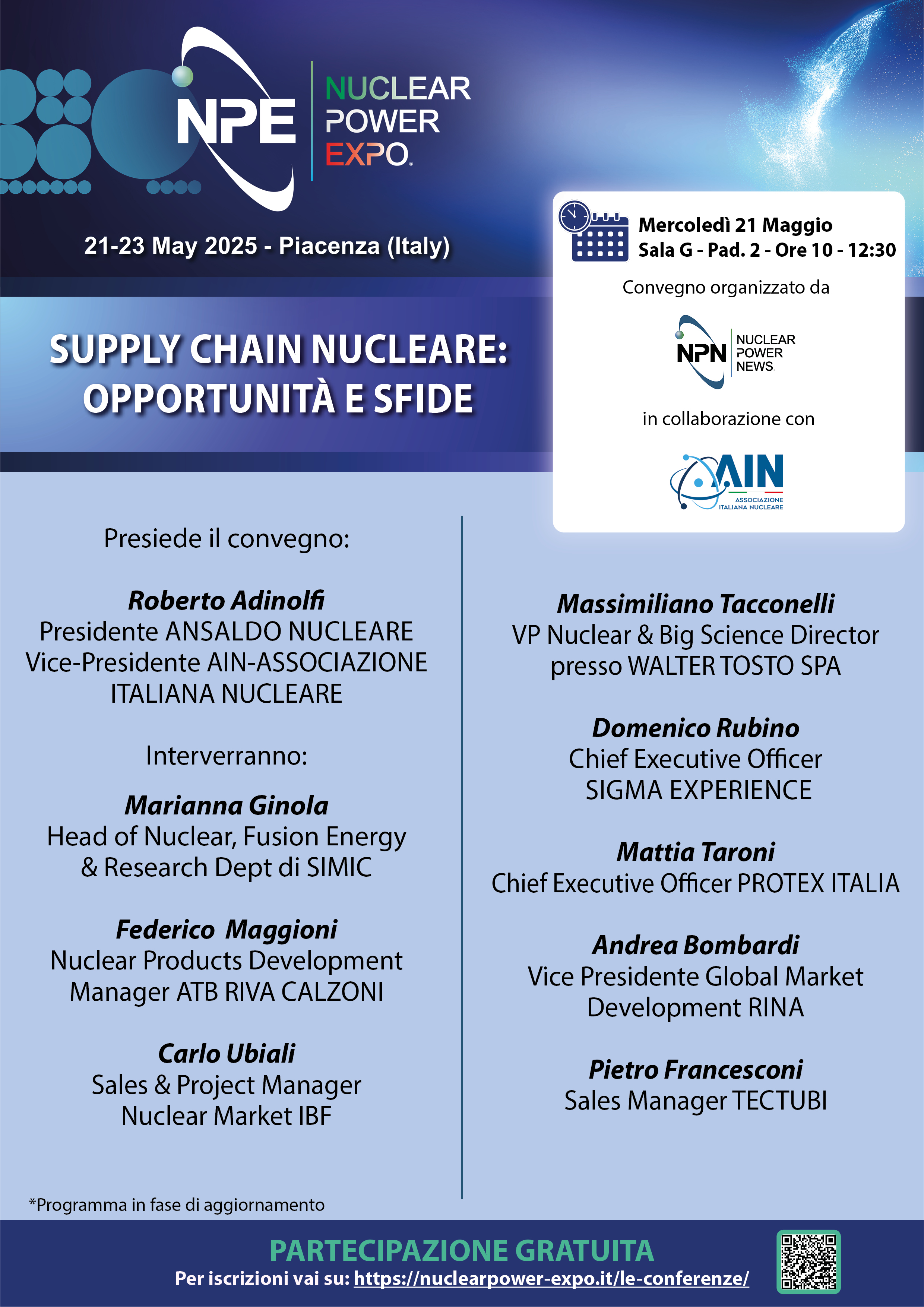 Durante Nuclear Power Expo, è previsto un ricco programma di seminari tecnici e conferenze, organizzate con il supporto delle principali associazioni di settore e delle più importanti aziende nazionali ed internazionali, che aggiorneranno i partecipanti sugli ultimi sviluppi tecnologici e normativi del settore.